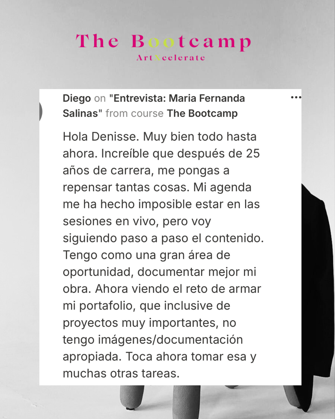 Este espacio es un sneak peek de nuestro programa intensivo The Bootcamp —un lugar donde hablamos de visión, dirección, objetivos y del lado más real de construir una carrera artística.